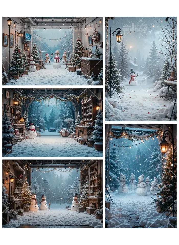 • موضوع: ترکیبی از فضاهای داخلی زمستانی با آدم برفی، درخت کریسمس و عناصر تزئینی